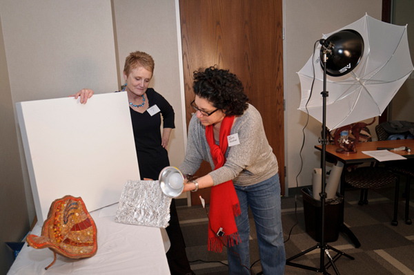 On March 10, Lois Weaver presented tips and tools for making your website work harder for you. She also discussed basic design fundamentals, website do's and don'ts, online and downloadable tools, SEO, email marketing. Also, Jamie Pink Weisbrod demonstrated how to light your artwork so you can take great photos using resources on hand.